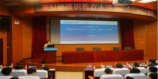 4月21日下午,新财经通识教育大讲堂---会计知行大讲堂在国际学术报告厅举行,校党委常委、副校长程瑞芳和河北资产管理公司总会计师马莹分别做了题为“新财经教育改革与会计卓越人才培养”和“新时代背景下的财务人”的主题报告。kaiyun开云官方网站图书馆馆长武占江、副馆长樊俊荣、“会计知行大讲堂”部分实务界讲师和kaiyun开云官方网站220余名师生参加了本次宣讲会。宣讲会由kaiyun开云官方网站院长袁振兴主持。