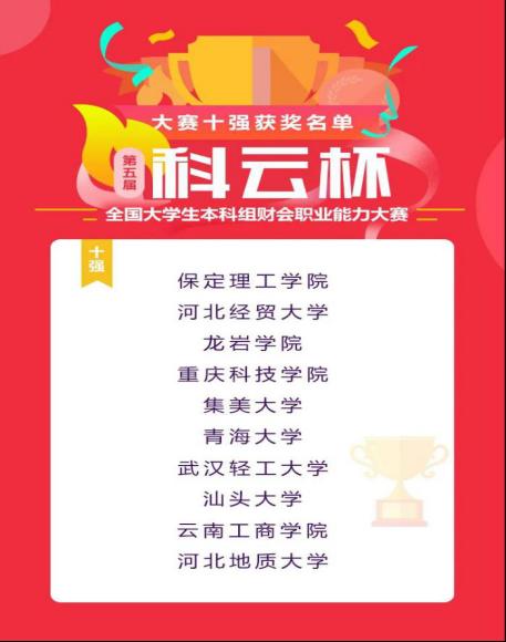 第五届“科云杯”全国大学生本科组财会职业能力大赛十强名单
