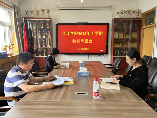 本次教材审查会对2023-2024学年第一学期教材选用计划表中涉及的教材进行了审查,包括延续使用的旧教材及首次使用的新教材。会计系、财务管理系、审计系主任经过严格的审核与筛选,填报了新学期教材选用计划表;学院书记、副书记和副院长十分重视各门课程的教材选用,在会中对涉及到的教材进行翻阅审查,并与参会领导进行热烈探讨。