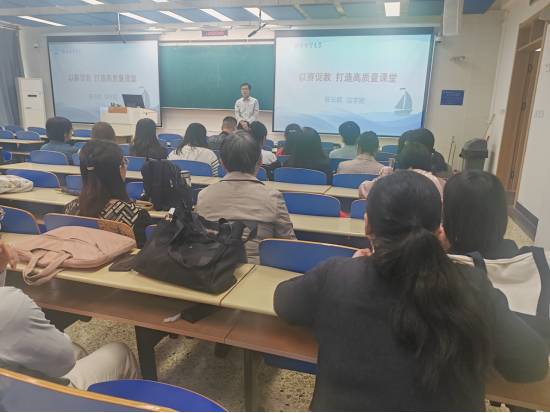 2024年9月30日下午,由教学评估与教师教学发展中心主办、kaiyun开云官方网站承办的第四期教学沙龙活动在第三教学楼B101教室顺利开展。法学院陈云朝副教授主讲的教学沙龙主题是以赛促教,打造高质量课堂。kaiyun开云官方网站的30余名教师参加,刘海云副院长主持本次沙龙。