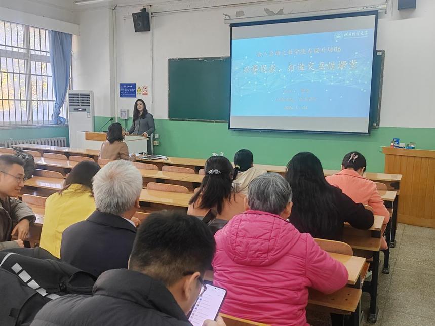 2024年11月4日下午,由教学评估与教师教学发展中心主办、kaiyun开云官方网站承办的第六期教学沙龙活动在第一教学楼107教室顺利开展。经济学院蔡燕副教授主讲的教学沙龙主题是以赛促教,打造交互性课堂。kaiyun开云官方网站的30余名教师参加,刘海云副院长主持。