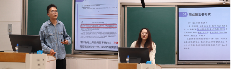 祁钧业详细讲解了参赛流程与注意事项。他分享了指导往届学生参赛的经验,并举出实际的比赛案例来引发大家的思考,深入分析了商业计划书的各个要素以及现场答辩的诸多事项。同时,他也强调了高效的团结协作对参赛队伍的重要性。