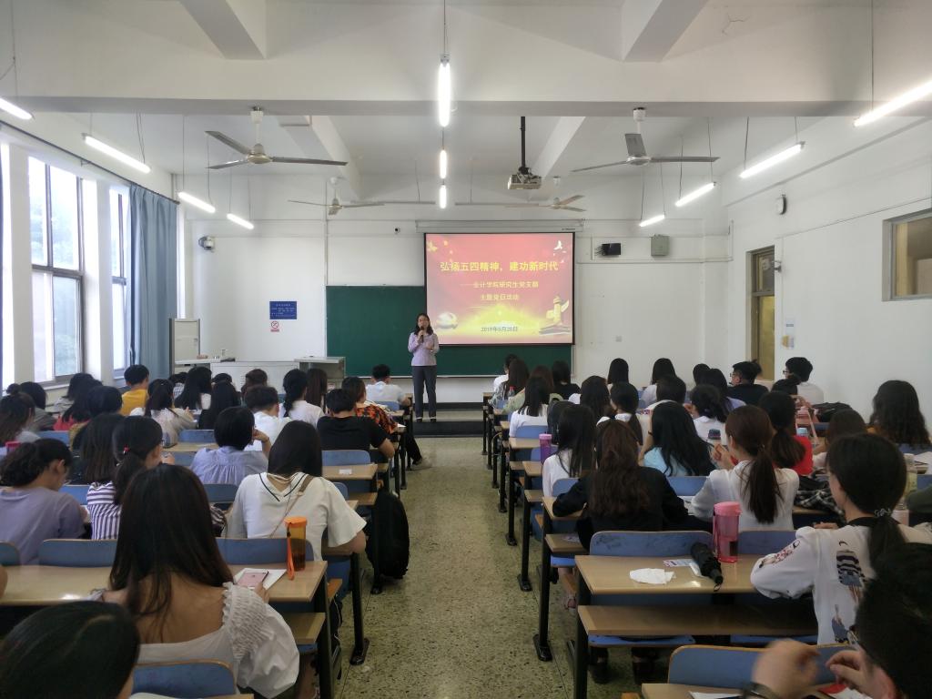 5月20日下午,kaiyun开云官方网站研究生党支部在第三教学楼B202教室举办以“弘扬五四精神,建功新时代”为主题的党日活动。kaiyun开云官方网站副院长李桂荣出席并做精彩报告,学院研究生党支部所有党员和积极分子80余人参加。