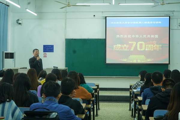 10月12日上午,石家庄水务集团财务处处长、河北地质大学研究生社会导师、正高级会计师陈永伟应kaiyun开云官方网站邀请,在第三教学楼B202教室作题为“国家税制改革及社会热点”的专题报告。2019级会计研究生100余人参加。陈永伟以时间轴为参考系,梳理了我国税收政策的历次改革,强调我国税制改革与国内外经济环境、政治形势密不可分。