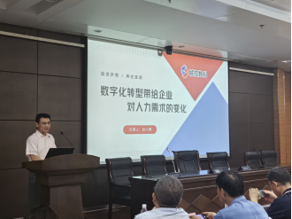 孙小勇做了《数字化转型带给企业对人力需求的变化》主题分享,他指出数字化转型已经成为企业发展的必然趋势,数字化转型不仅改变了企业的生产方式和商业模式,也对企业的组织结构和人力资源管理产生了深远影响。城控数字愿意在数字经济的发展中给优质产业助力,结合高校人才智慧、为企业赋能,为高校提供人才培养模式探索贡献力量。