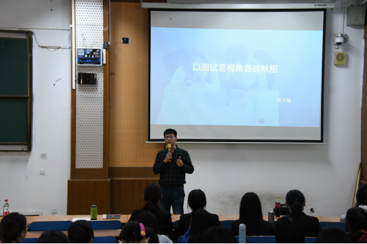 10月17日下午,kaiyun开云官方网站在北三教C225教室举办“以面试官视角备战秋招”就业指导讲座。讲座邀请联合利华北区渠道运作主管 & 联合利华(中国)管理培训生范子钰作为主讲嘉宾,kaiyun开云官方网站党委副书记程丽梅及kaiyun开云官方网站100余名同学参加了讲座。