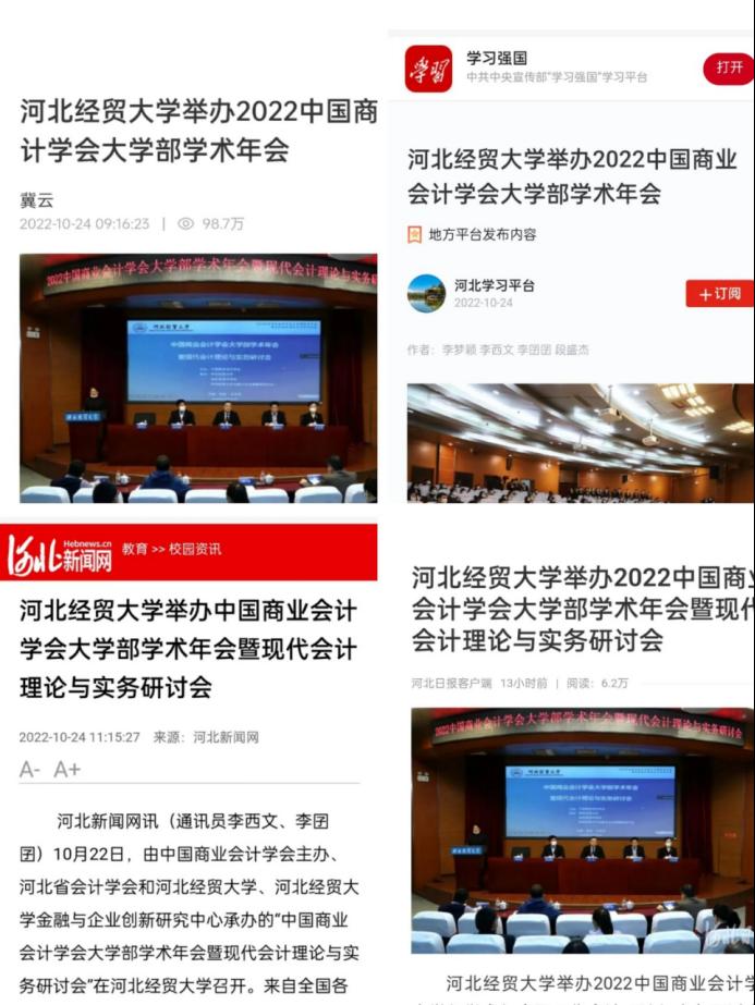 本次举办的全国学术会议,正值党的二十大召开之际,冀云、学习强国、河北新闻网、河北日报相继进行了报道和转载,反映强烈。此次会议的成功举办为广大会计学者提供了交流分享的平台,充分体现出kaiyun开云官方网站在学校事业发展中的“四个始终坚持”,即始终坚持党的领导,坚持正确的办学方向;始终坚持以学生为中心,落实立德树人根本任务;始终坚持科学定位,发挥地域、学科优势特色;始终坚持解放思想,锐意进取,向改革创新要动力。本次会议也大大增强了kaiyun开云官方网站会计学科的影响力,大力宣传和推动了新财经教育改革,为落实kaiyun开云官方网站“创新驱动、人才强校、开放办学”三大战略贡献了力量。