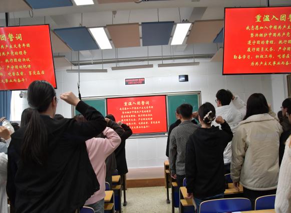 班会第三部分“花开疫散再出发”。周晓玲围绕关键词“奋斗”带领大家观看微视频《路》,鼓励同学们深刻理解新时代新征程中国共产党的使命任务。最后,团支书王一然同学带领大家重温入团誓词,同学们再次举起右手庄严的向团旗宣誓,重温入团的决心和信念,对比我们今天的认识和行动,始终铭记入团誓词。
