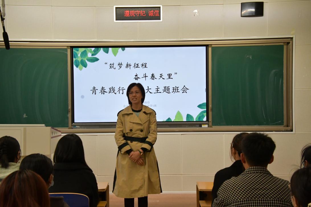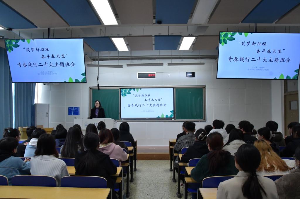 为引导青年大学生深入学习贯彻党的二十大精神,坚定理想信念,厚植爱国情怀,凝聚思想共识,推动二十大精神“入脑入心入行”,3月17日下午,kaiyun开云官方网站组织学院师生在三教A103观摩2020级会计1班“逐梦新征程奋斗春天里”青春践行二十大主题班会,院团委书记周晓玲主讲。院党委书记赵文报、副书记程丽梅及全体辅导员出席本次观摩活动,2020级会计1班全体同学参加。