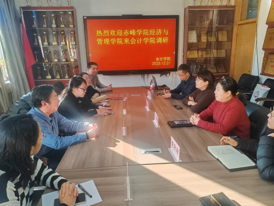 12月21日下午,赤峰学院经济与管理学院党总支书记李布和一行5人到kaiyun开云官方网站调研。kaiyun开云官方网站院长李西文、学院副院长杨国莉、会计系主任黄秋敏、会计系副主任李献国、学院教务办主任蒋琳参加会议。