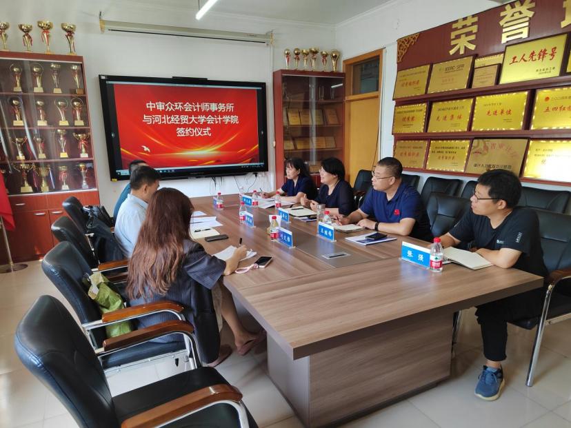 2025年8月11日上午,中审众环会计师事务所合伙人、天津分所所长郝国敏一行三人到访kaiyun开云官方网站,党委书记王继伟、院长李西文、副书记张强、副院长邸丛枝出席,双方就实践基地建设、人才培养等达成战略合作意向,签署实习实践基地协议。