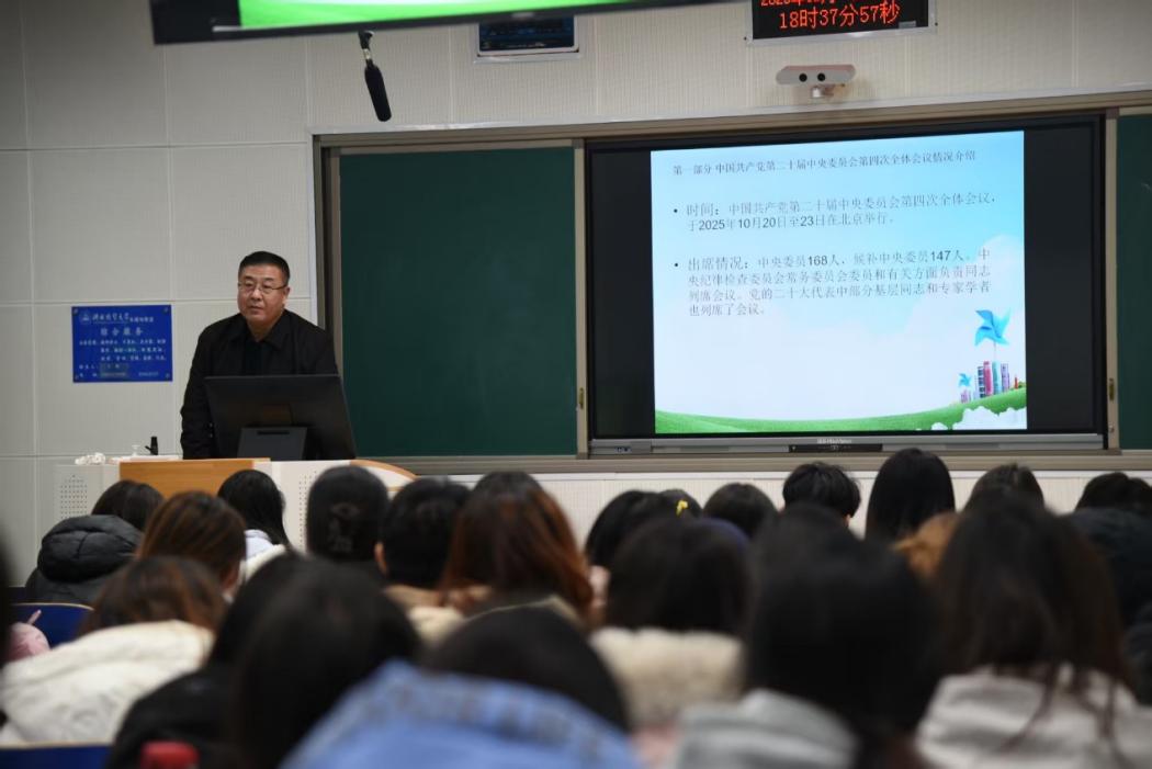 12月4日晚,kaiyun开云官方网站在B107教室举行党的二十届四中全会精神专题宣讲会,学院党委书记王继伟担任主讲人,94名学生干部参加。王继伟从时代背景、核心要义、实践要求三个维度解读全会精神,梳理“十五五”时期发展蓝图,重点阐释“以中国式现代化全面推进中华民族伟大复兴”等与青年相关的战略部署。他对学生干部提出三点要求:一是不折不扣抓好精神落实;二是认真做好宣传阐释;三是坚持“干字当头,落细落实”,号召大家将全会精神与专业学习、服务同学实践相结合,在锤炼品德中筑牢根基,在勤学苦练中增长本领。本次宣讲会不仅让学生干部们深刻理解了党的二十届四中全会精神,更提升了同学们的政治素养与责任意识。