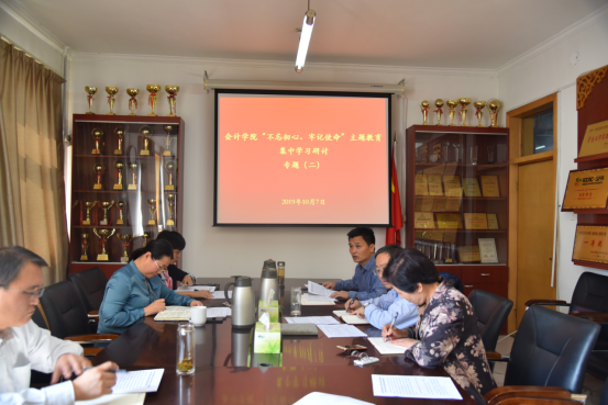 在学习教育阶段,学院不断创新学习方式,将学习内容划分为党章党规党纪、重要讲话、专著类、案例和先进事迹、红色教育五个专题集中学习研讨。通过领导干部率先垂范,集中广泛学;以学习强国为自学平台,网络随时学;把学习与工作紧密结合起来,工作岗位学等形式,做到学习不间断,学习不缺席,学习不走过场,不断打牢思想基础,确保学深悟透,提高学习效果。