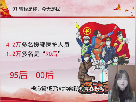 参赛同学围绕比赛主题,紧密结合疫情发生以来亲身所学、所看、所感、所悟,以微党课的形式讲心得、谈体会,一起感悟战疫中的中国精神、中国速度、中国力量,学习战疫先锋故事,致敬战疫英雄,抒发爱国情怀,展现青春担当。