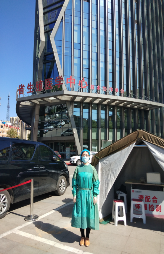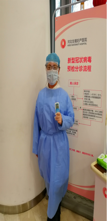 作为班级一名学生干部、共青团员,在看到无数医护人员义无反顾地奔赴抗击疫情一线后,她主动请缨,通过岗前培训,成为河北生殖妇产医院第一批预检分诊人员。从大年三十这个本该阖家团圆的日子开始正式上岗,时至今日20多天过去了,一直在抗疫一线默默地奉献和坚守。