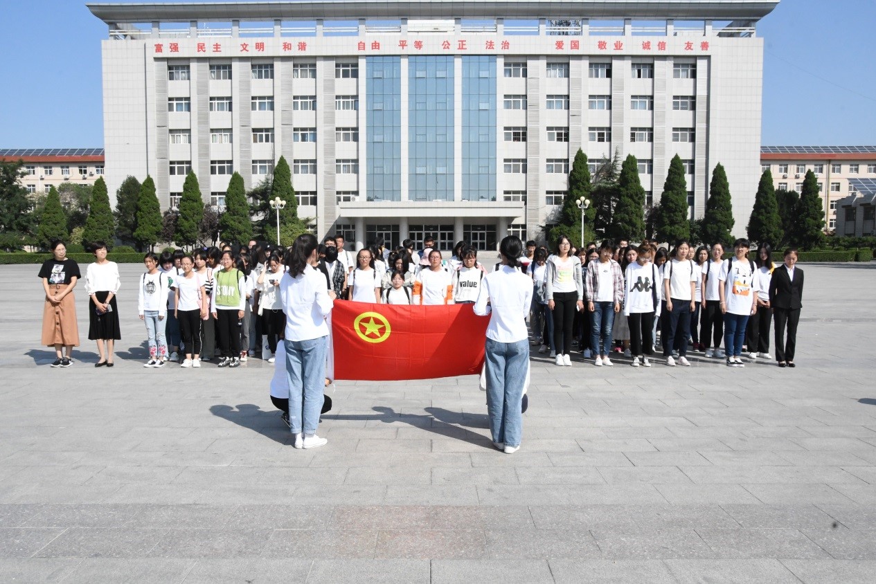 活动在全体师生合唱的国歌声中拉开帷幕,2019级学生代表刘盼满怀深情进行国旗下演讲,她将个人梦想与祖国未来紧紧联系在一起,倡议大家在大学期间努力学习、不断充实自我,以实际行动向伟大祖国献礼。随后,全体同学重温入团誓词,面向团旗庄严宣誓、唱响团歌。最后,程丽梅做总结发言,希望同学们能不忘初心、脚踏实地、肩负使命、勇于担当,为新时代中华民族伟大复兴的中国梦添砖加瓦。