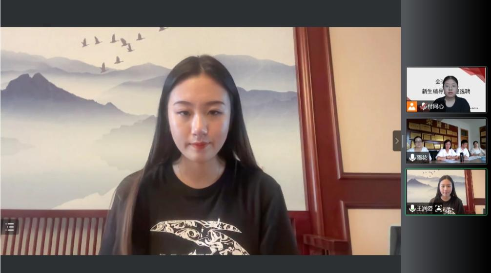 参加新生辅导员助理竞选的共有21名同学,会议采用线上与线下相结合的方式,面试由自我介绍和自由问答两个环节组成。自我介绍环节,同学们结合自身任职经历、性格特点、兴趣爱好等方面进行阐述。自由问答环节,评委围绕同学们的在校表现情况就学业情况、竞赛情况、职业规划、工作设想等与每位同学进行深入交流。最终,经综合评议,确定王润姿等8名同学担任2022级新生辅导员助理,任期一年。