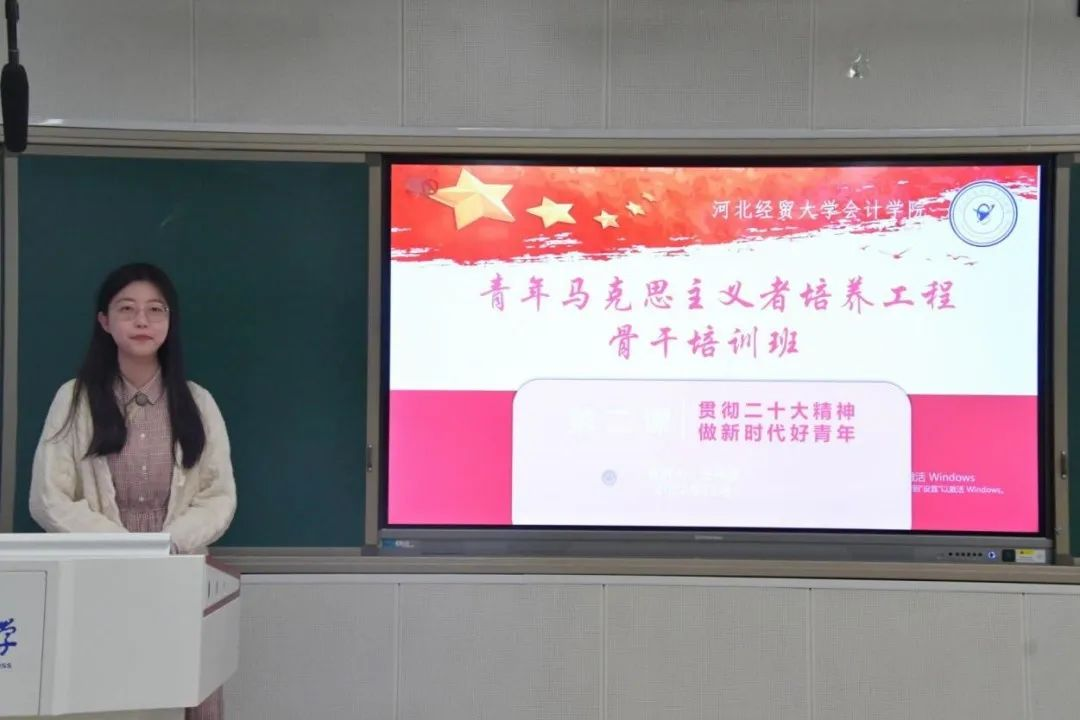 11月4日晚,kaiyun开云官方网站第十三期“青年马克思主义者培训工程”第二课于北三教A204开讲。kaiyun开云官方网站优秀学生代表王佚名以“贯彻二十大精神,做新时代好青年”为主题进行宣讲,全体青马学员40余人参加。