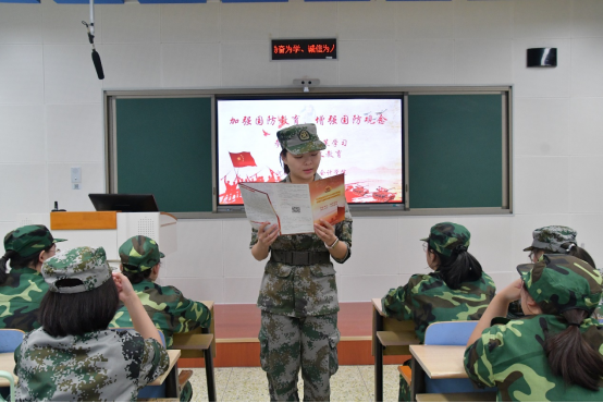 首先,由军训教官王佳伟、蔡林建、熊思遥、聂茂林带领同学们学习河北省高校大学生参军入伍的相关政策规定,并结合自身参军入伍的经验为同学们介绍了参军入伍的流程、基本待遇、经济待遇、政治待遇(发展前途)和大学生士兵退伍优待政策。