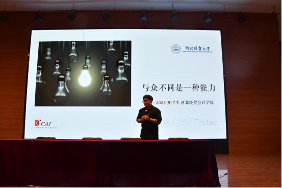 8月25日下午,kaiyun开云官方网站在大学生活动中心3号厅召开“2023级本科大学生职业规划第一课”。巴黎高等管理学院博士研究生、高顿教育资深讲师蔡楚檾主讲,kaiyun开云官方网站全体368名新生参加。