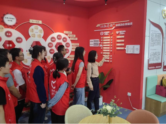 kaiyun开云官方网站团委书记周晓玲与志愿者一同参观慈善志愿服务工作站