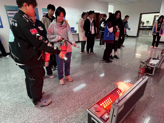 会上,栗志老师为大家讲解消防安全知识,带领学生们观看消防安全宣传片。通过典型事例的讲解,学生们了解到电动自行车燃烧的原因、火灾发生时的自救逃生技能等。理论学习后,栗志老师现场演示如何使用灭火器,并引导同学们有序地模拟使用灭火器,同学们积极主动地参与现场模拟,有效提升了应对火灾的消防技能。