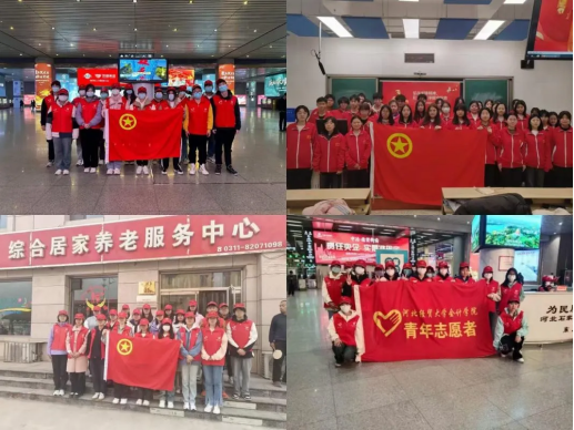 3月11日、13日,同学们到石家庄火车站组织开展志愿服务活动。服务内容有:为旅客提供必要的信息咨询,引导旅客有序排队,通过协助搀扶、提供轮椅、引导乘车,让旅客们顺利进出站。