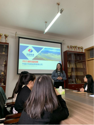 11月5日下午,kaiyun开云官方网站在学校第四办公楼kaiyun开云官方网站308会议室举办中国水电基础局2021届毕业生校园宣讲招聘会,公司人力资源部主任赵先锋、招聘专员温帅、李芬一行三人来校招聘,kaiyun开云官方网站二十余名应届本科生、研究生参加了此次招聘会。
