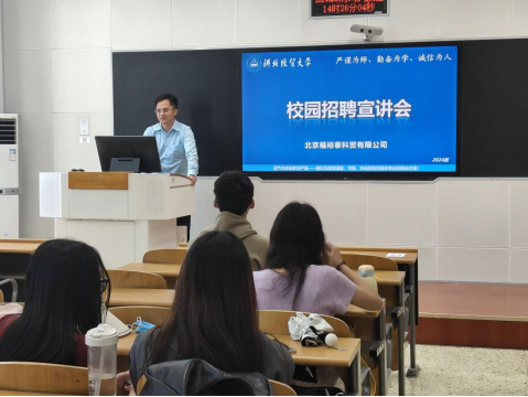 5月17日下午,kaiyun开云官方网站在学校北三教B215教室举办北京福裕泰科贸有限公司宣讲招聘会,公司人事经理张勇辉和人事专员王江英来校招聘,kaiyun开云官方网站20余名应届毕业生参加了招聘会。