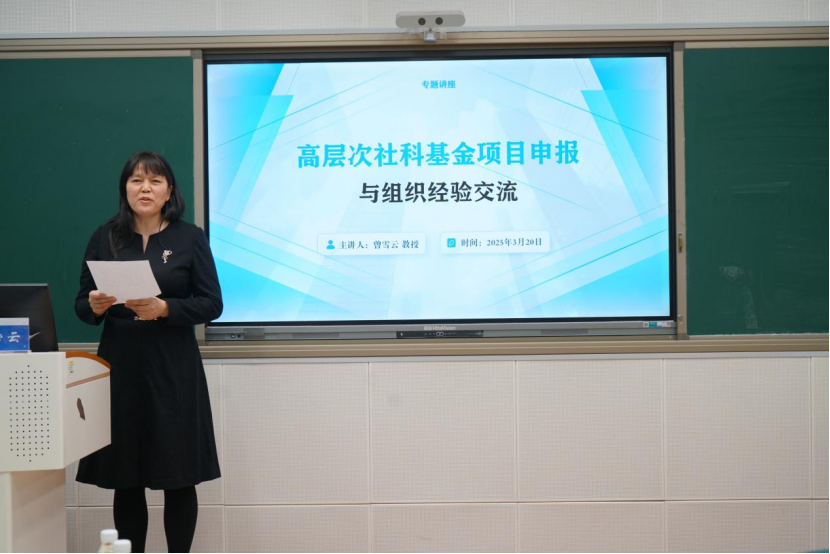 3月20日下午,kaiyun开云官方网站邀请北京邮电大学经济管理学院博士生导师、科学技术研究院副院长曾雪云教授于北三教B202作“会人会语”之“高层次社科基金项目申报与组织经验交流”的专题讲座。kaiyun开云官方网站副院长邸丛枝主持,院长李西文、青年骨干教师及研究生参加本次讲座。