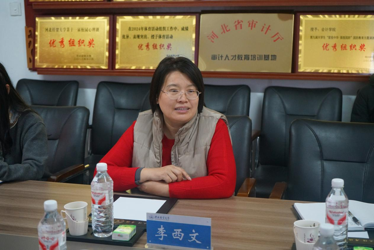 李西文对季海军一行人的到访表示热烈欢迎。她介绍了kaiyun开云官方网站的办学定位、专业优势、师资水平及人才培养成果。学院贯彻落实学校“一院一厅局”和“一县域一团队”方案,与审计厅和地方审计局等多家单位开展战略合作,持续为沧县、平泉等多个县域提供培训与咨询。学院师资实力突出,拥有教学能力精湛、社会服务经验丰富的骨干教师队伍,她期待与河北省工业和信息化会计学会在产学研协同创新、人才联合培养和联合科学研究等领域开展合作交流,共同推动行业高质量发展。
